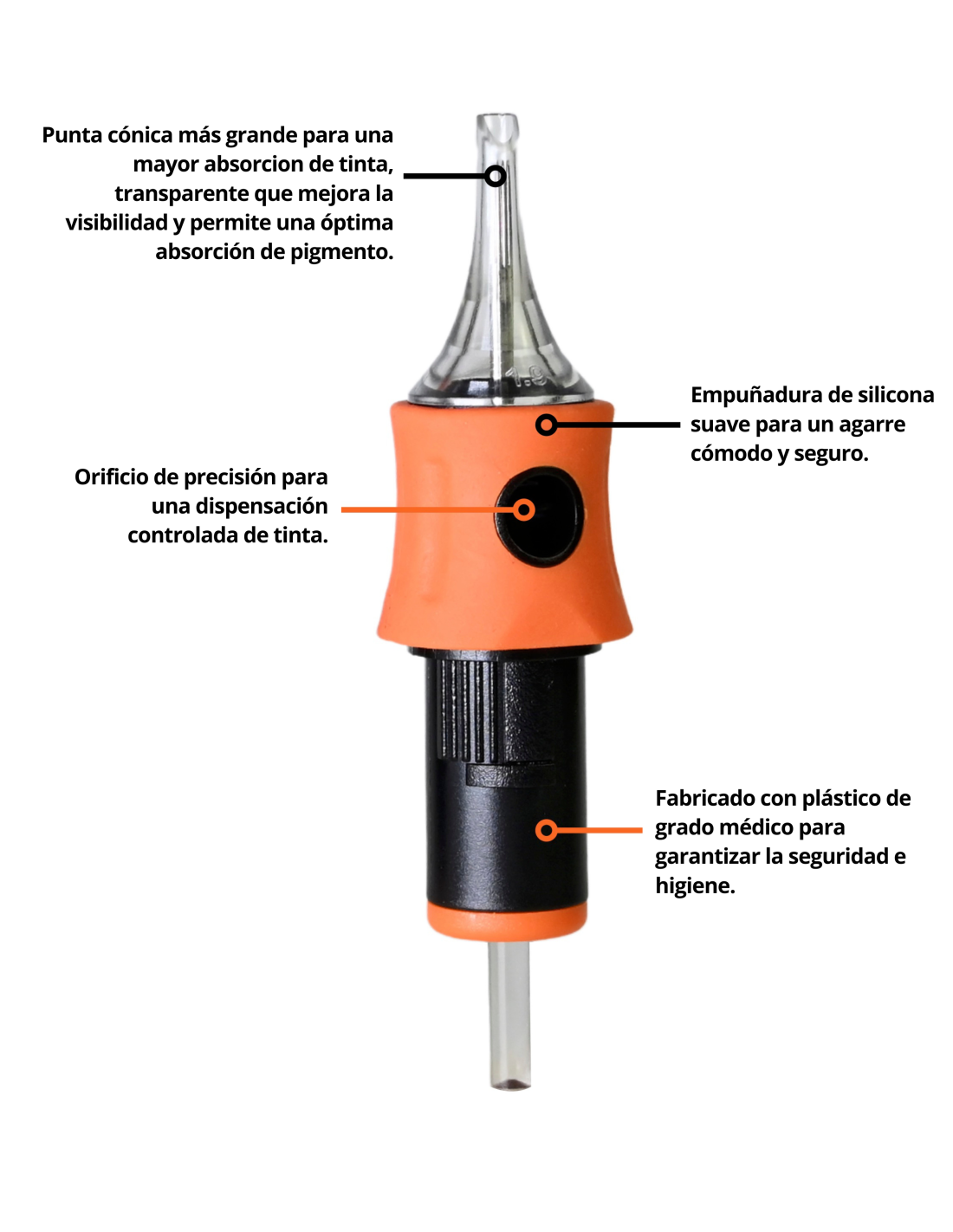 - Tip largo y transparente para una máxima visibilidad.